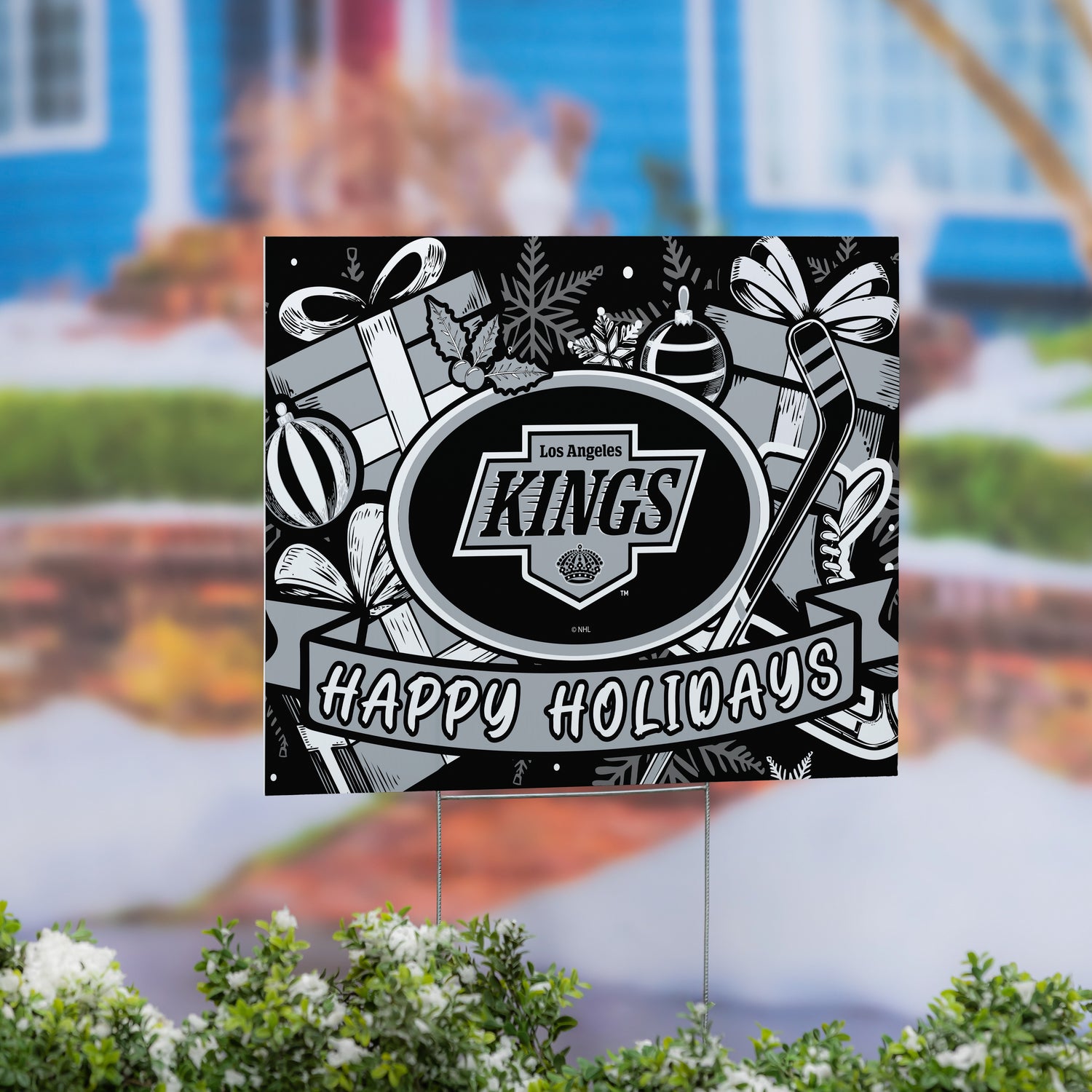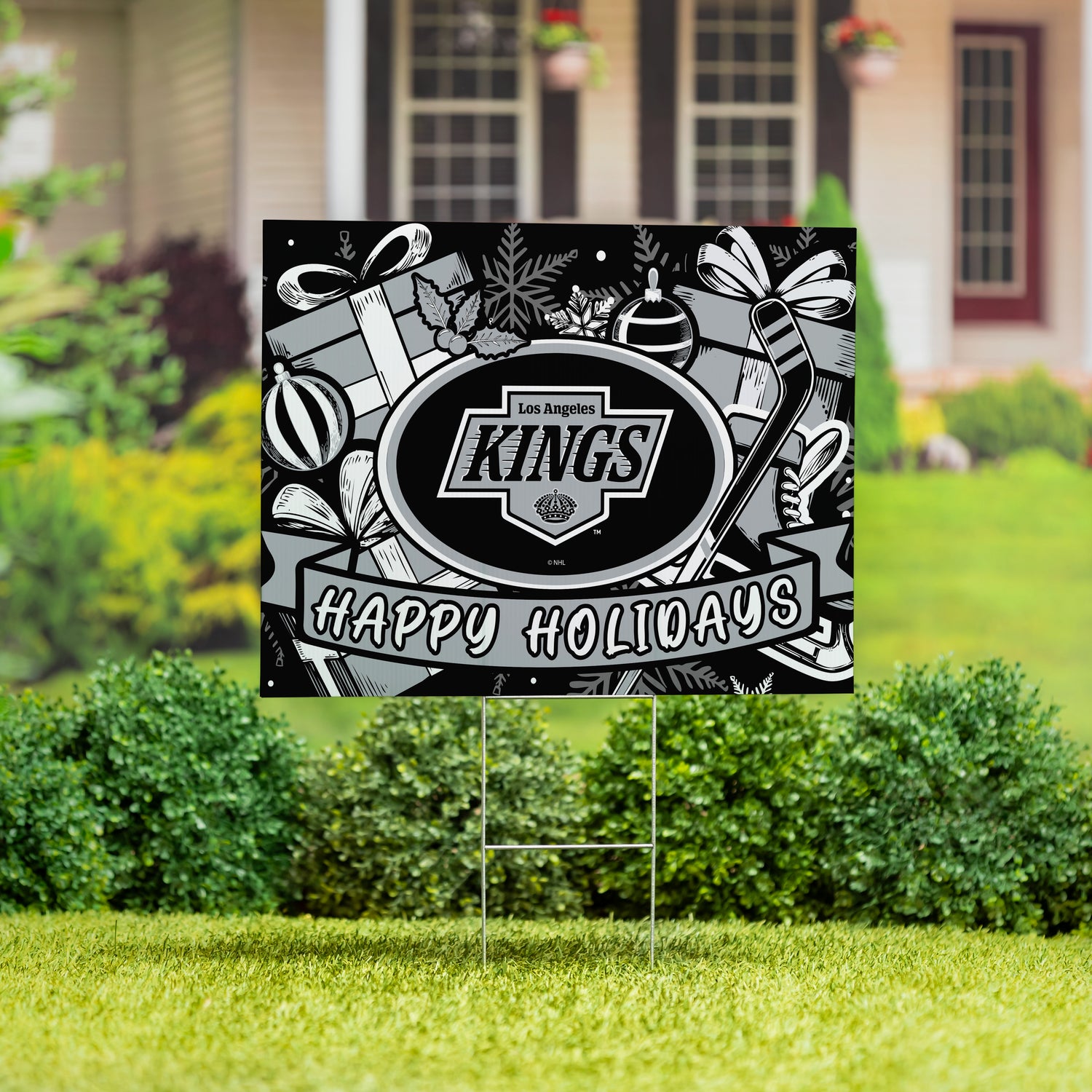 Deck the yard with this wonderful sign during the holiday season. It's the perfect mash-up Christmas and team spirit. Featuring bold team colors, jolly accents, and the officially licensed team logo, it's a must have for sports enthusiasts who love waking up early Christmas mornings to open presents. Whether cheering on the best team or welcoming Santa Claus to the home, this yard sign makes every home dashing. Crafted of durable materials with a weather-resistant design, this decor is recommended for covered outdoor use to ensure longevity.