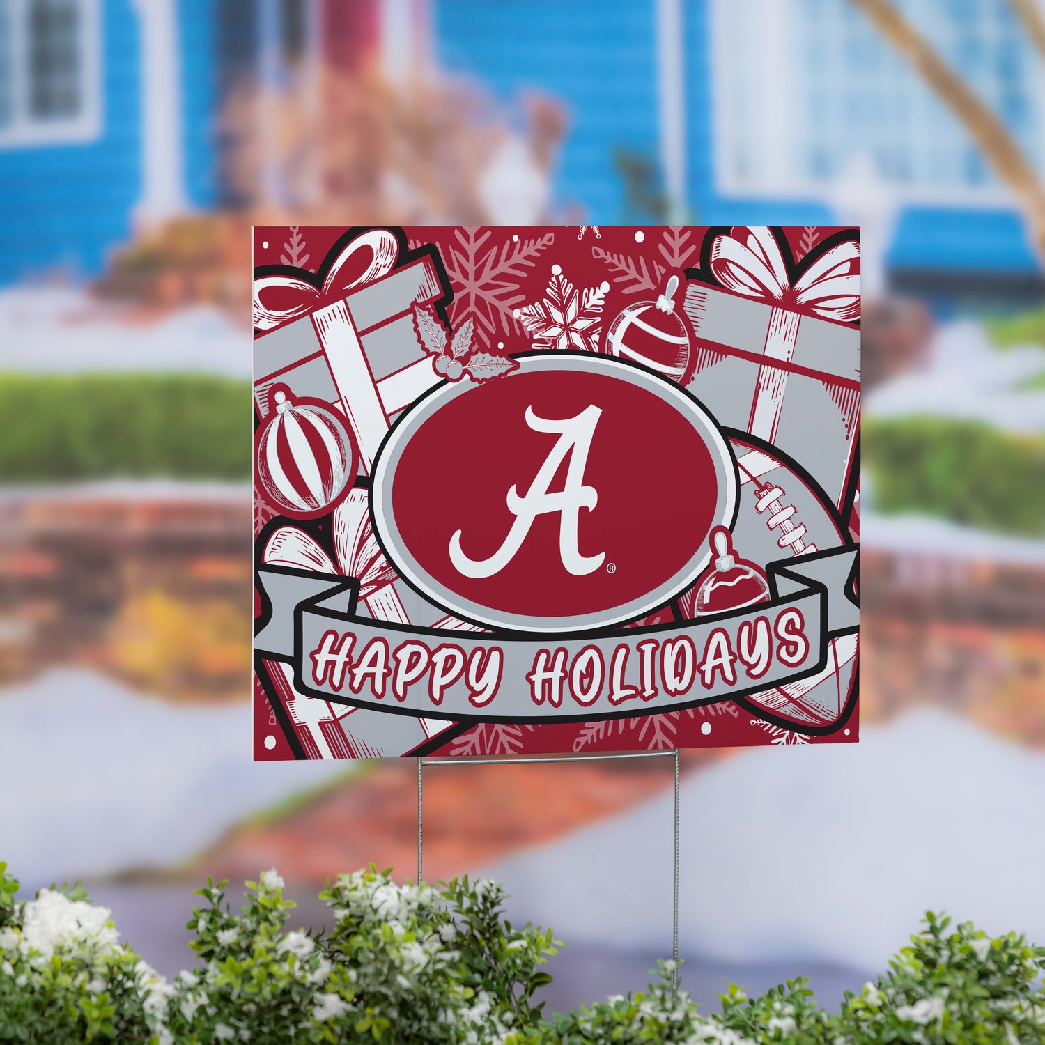 Deck the yard with this wonderful sign during the holiday season. It's the perfect mash-up Christmas and team spirit. Featuring bold team colors, jolly accents, and the officially licensed team logo, it's a must have for sports enthusiasts who love waking up early Christmas mornings to open presents. Whether cheering on the best team or welcoming Santa Claus to the home, this yard sign makes every home dashing. Crafted of durable materials with a weather-resistant design, this decor is recommended for covered outdoor use to ensure longevity.