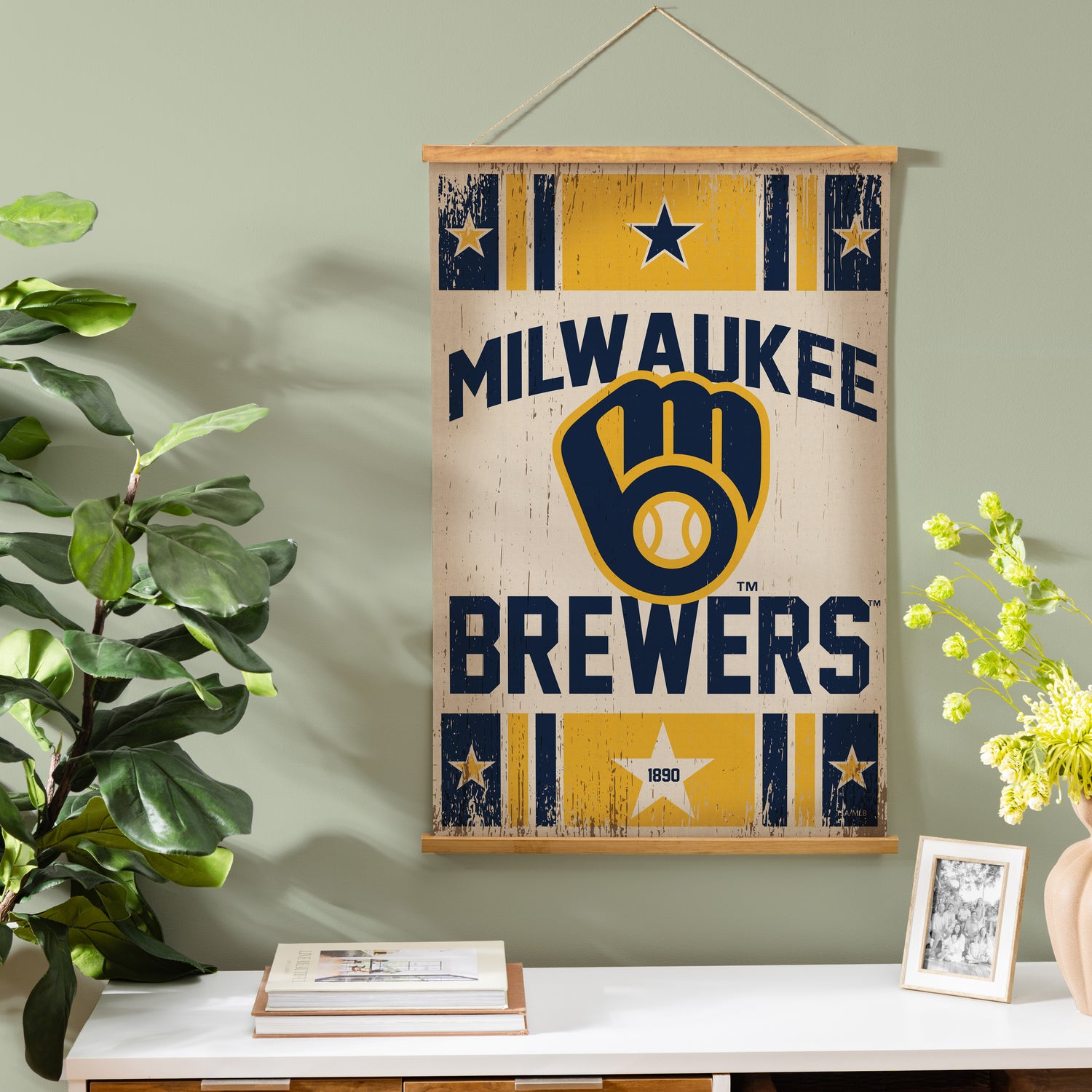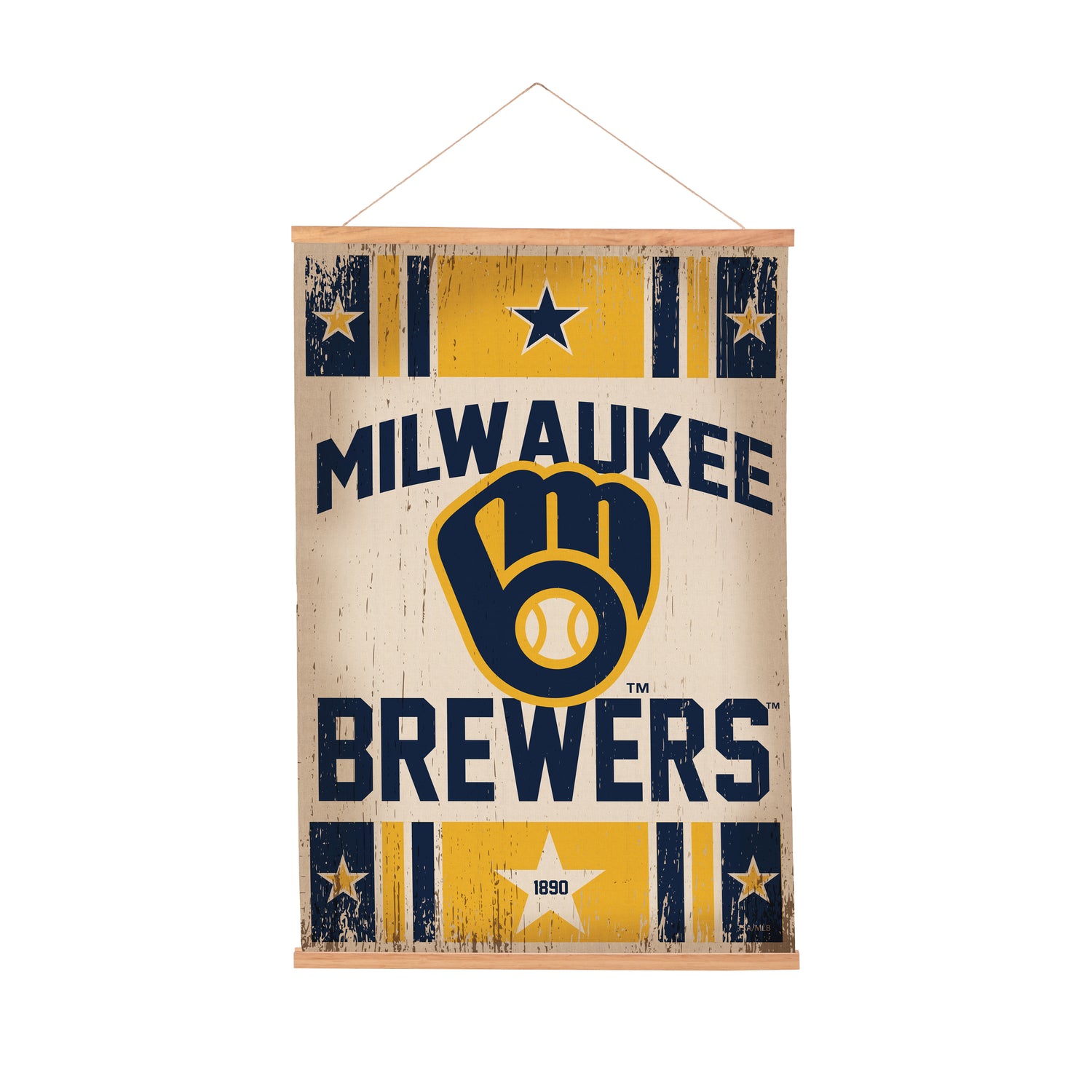Bring MLB team pride to your assortment with this Milwaukee Brewers Canvas Wall Tapestry, a medium statement piece that pairs crisp, multicolored artwork with warm, natural accents for polished wall decor. This three-piece design assembles easily for straightforward indoor installation and flexible merchandising across fan-favorite zones. Sized to make an impact without overwhelming the space, it’s a versatile decorative accent for apartments, offices, and fan caves, and doubles as high-appeal game room decor. Simple care keeps it looking fresh season after season.