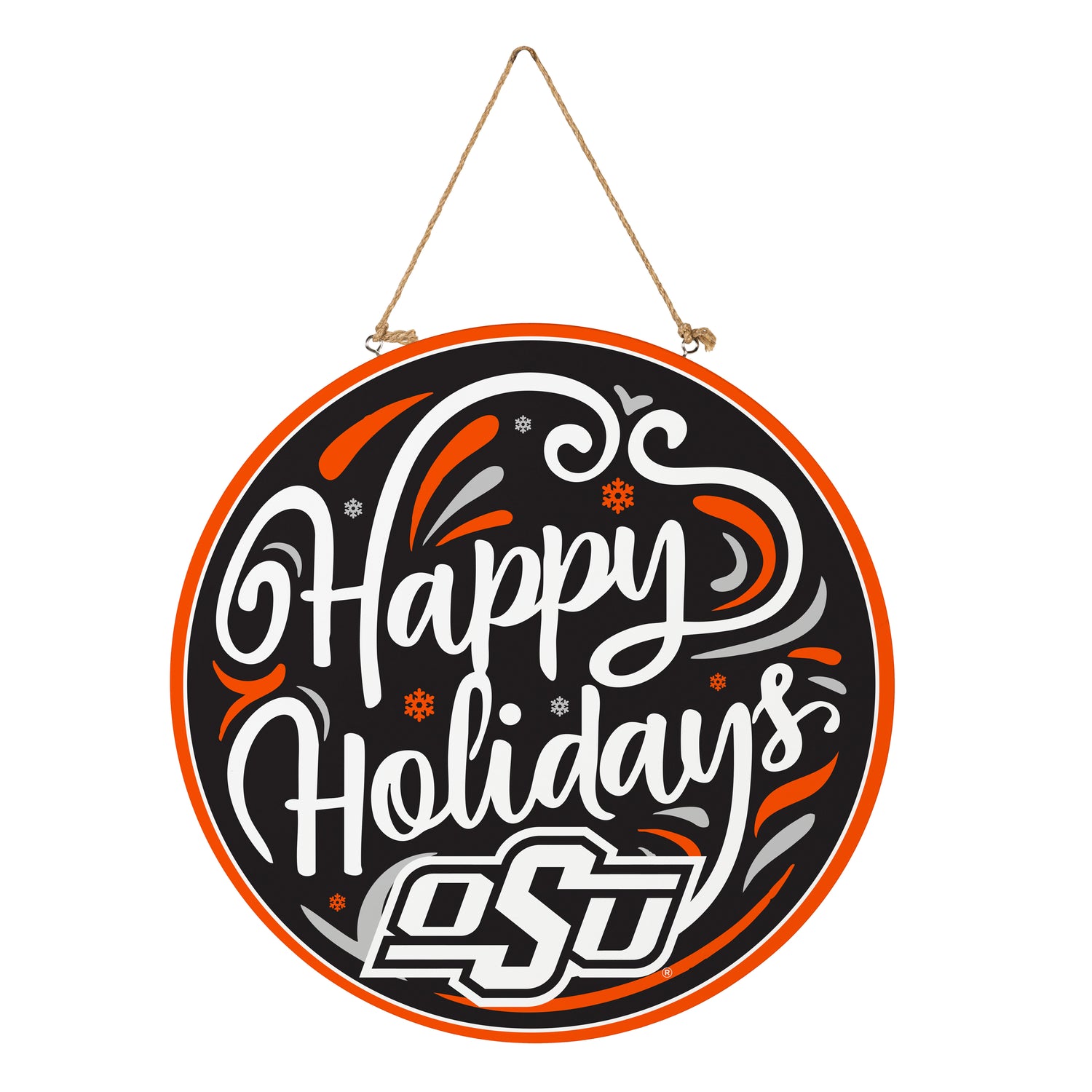 Oklahoma State University Holiday Round Door Décor with Hanging Rope, 18x18