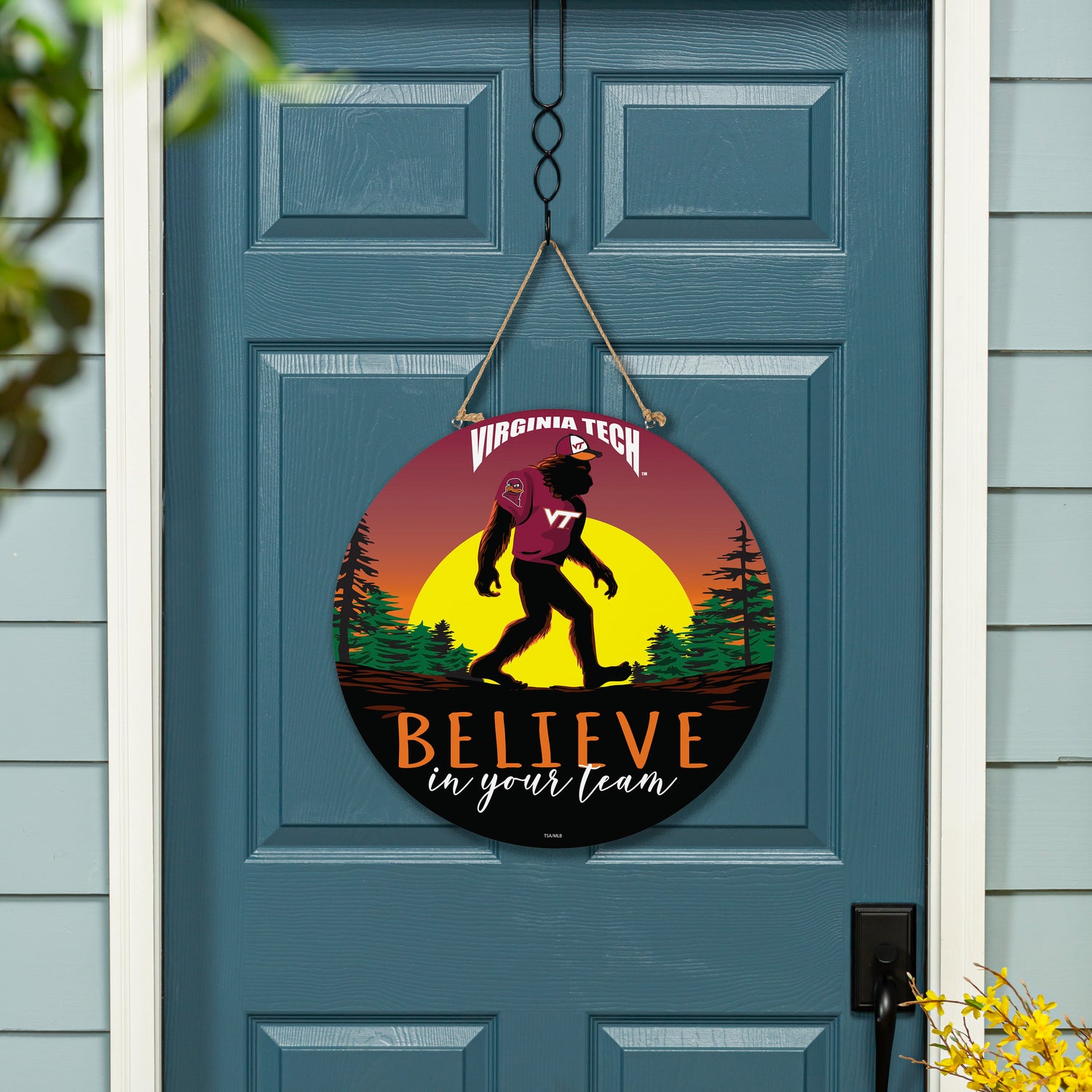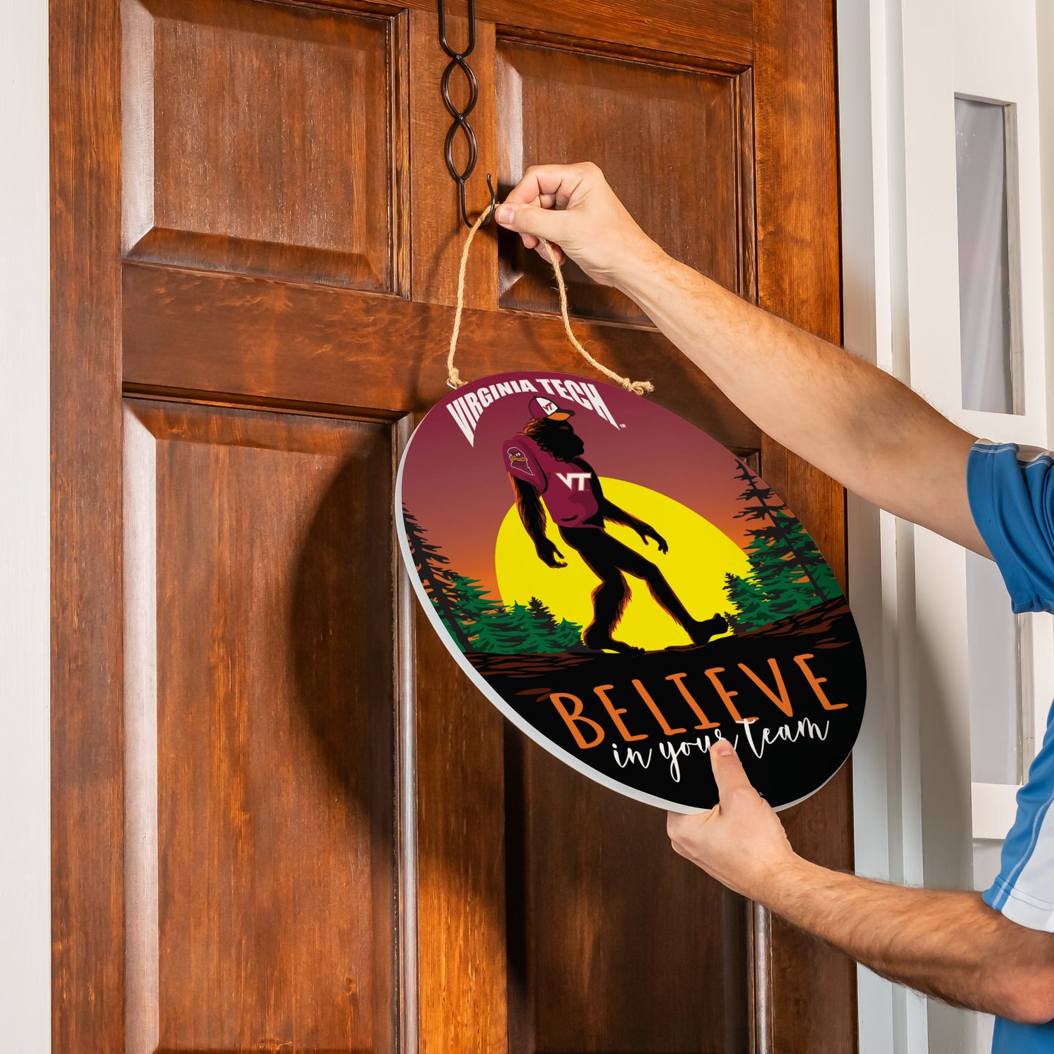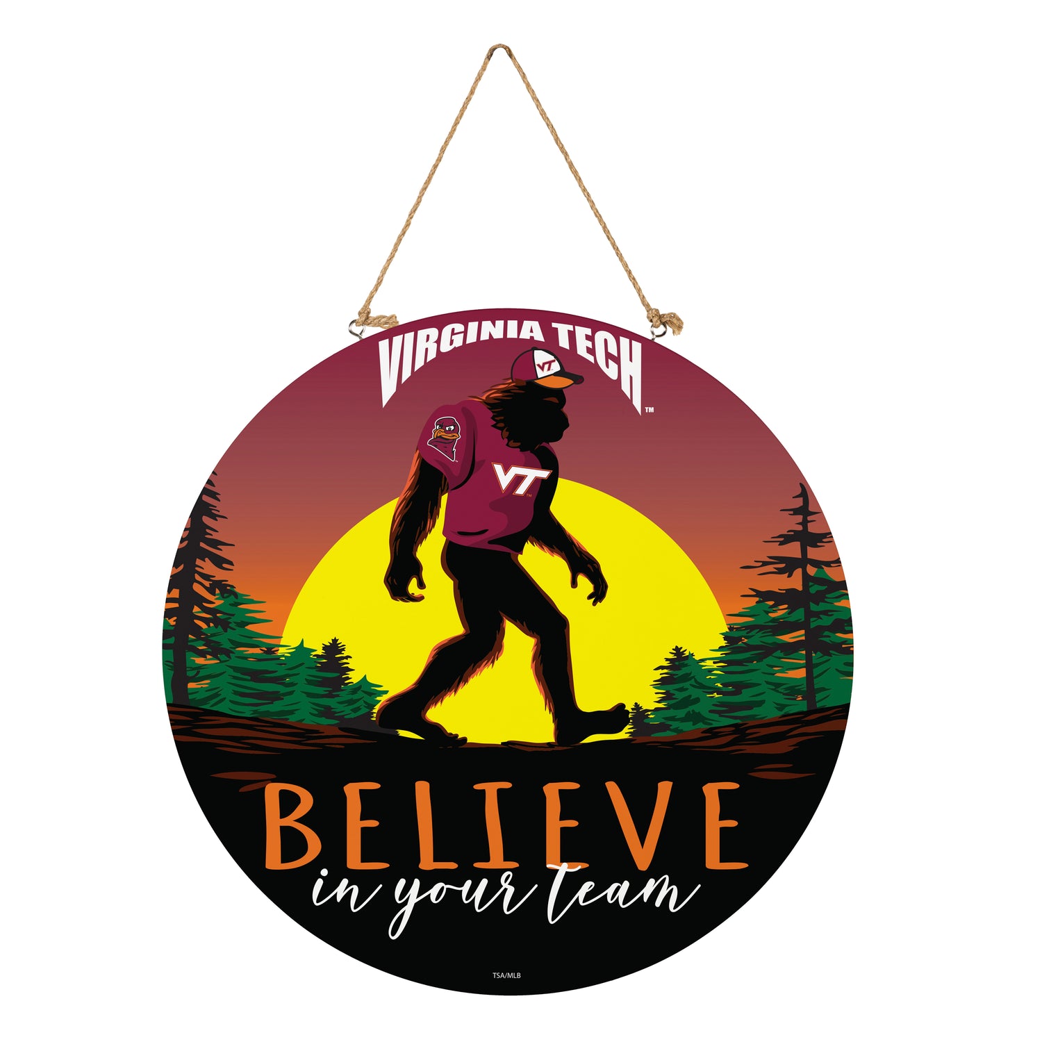 Virginia Tech Bigfoot Round Door Décor with Hanging Rope, 18x18