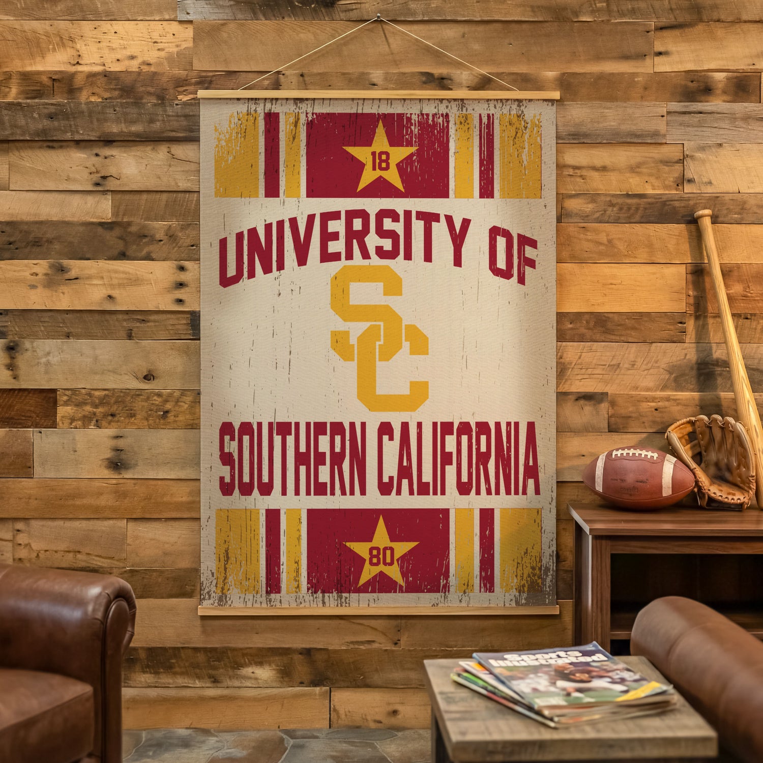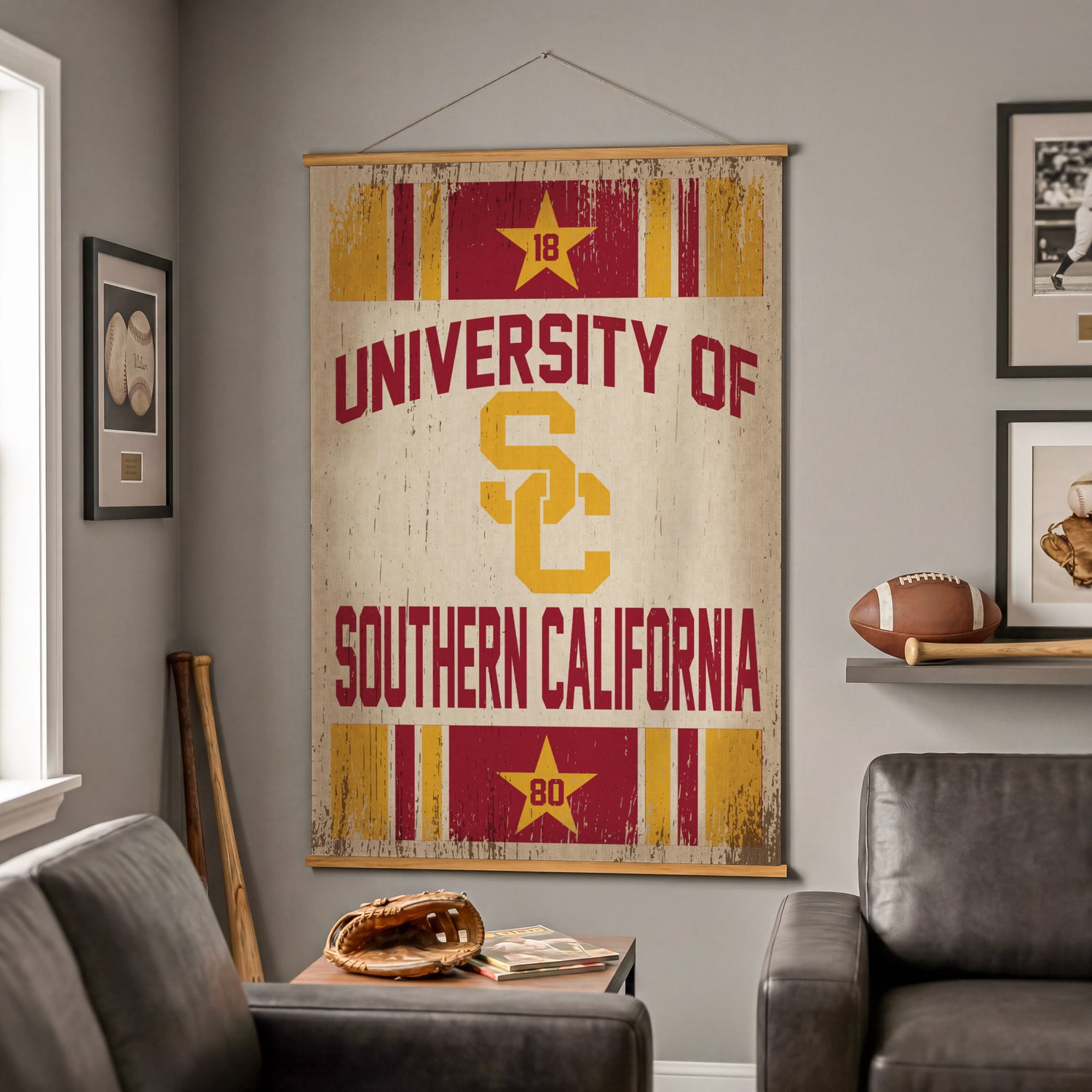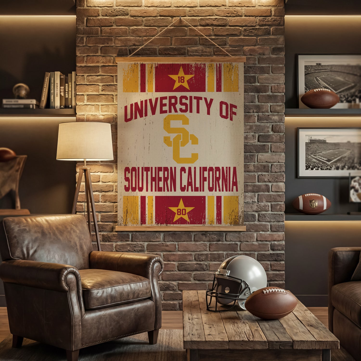 Celebrate University of Southern California pride with a bold focal point: this large Canvas Wall Tapestry, a mixed-media collaboration by Design Turnpike in the Team Colors Bold Simple Series. This piece delivers a crisp, modern presentation in striking red and yellow that stands out in fan caves, dorms, and offices while remaining lightweight for flexible placement across wall decor assortments. Purpose-built for indoor displays, this NCAA design offers gallery-style impact with wipe-clean care and noted assembly required, making it a compelling, easy-to-merchandise addition to TeamSportsAmerica’s Home Decorative Accents lineup.