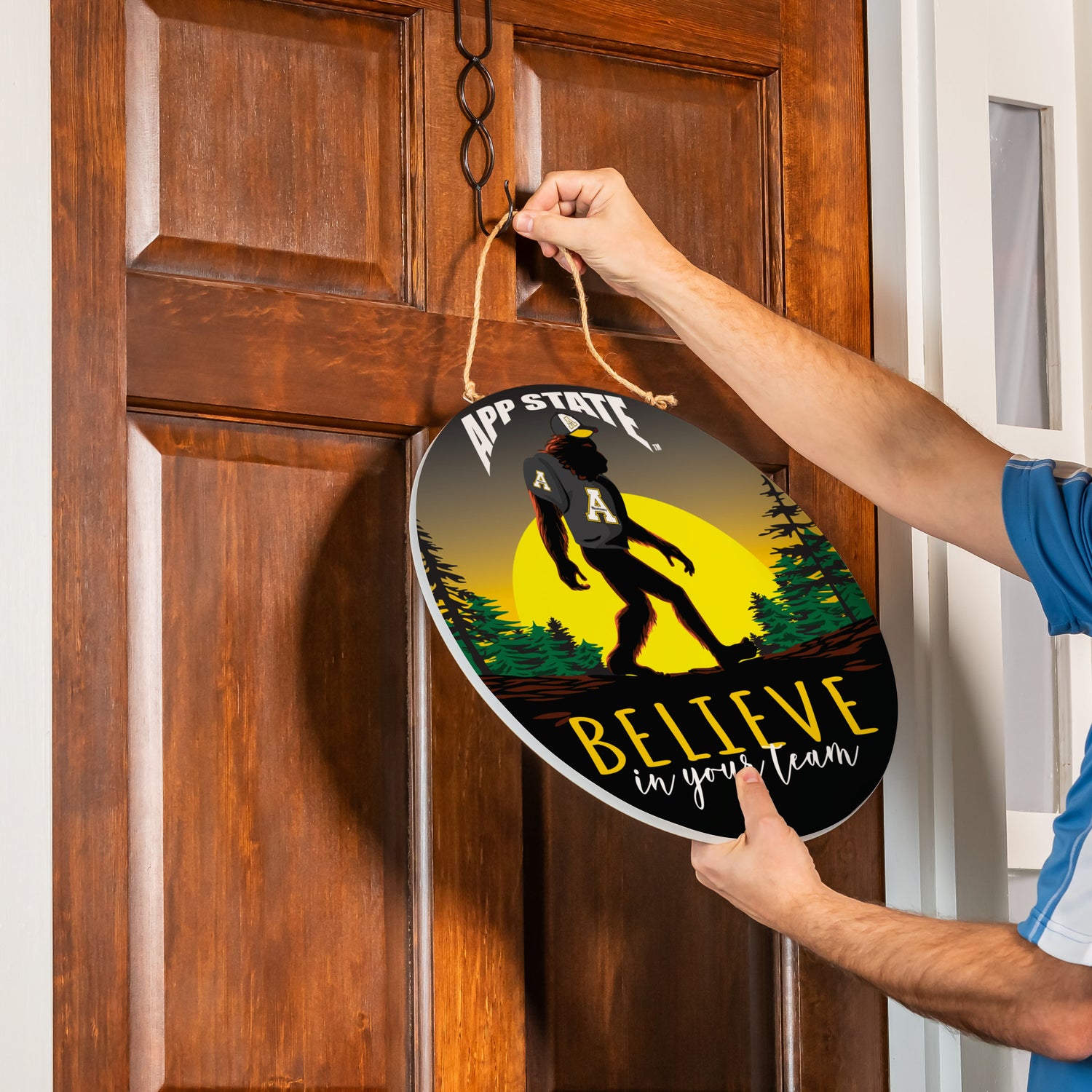 Appalachian State University Bigfoot Round Door Décor with Hanging Rope, 18x18