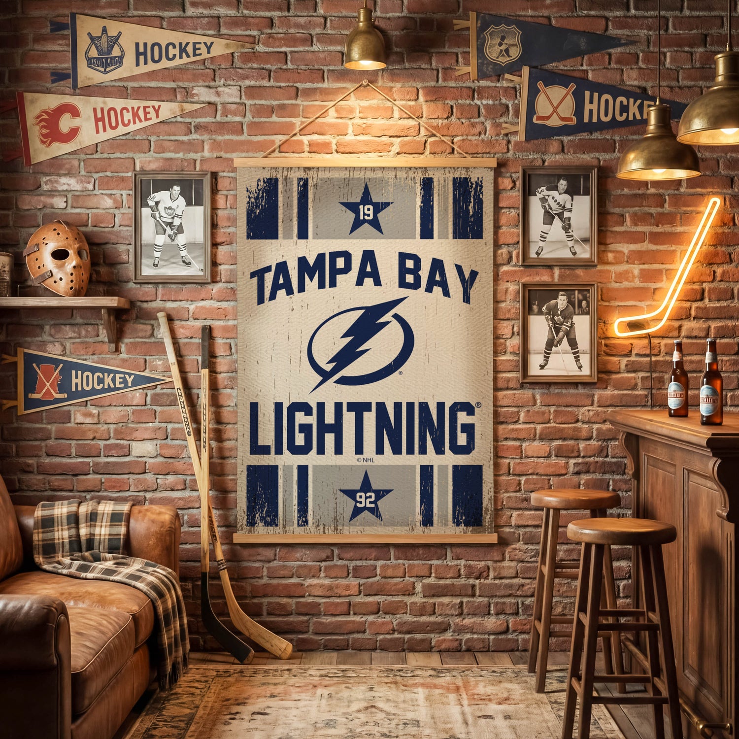 Bring unmistakable team spirit to any space with the Tampa Bay Lightning Canvas Wall Tapestry, a large piece designed to make an instant statement. Crafted on canvas, this wall decor offers a clean, textile look that integrates easily into fan caves, game rooms, offices, and dorms while highlighting NHL allegiance in a polished way. Its generous scale helps retailers build impactful sports displays and gives fans a bold, space-conscious solution for showcasing team pride. With strong year-round appeal for collectors and gift-focused shoppers, this tapestry is a versatile addition to wall decor and sports-themed assortments.