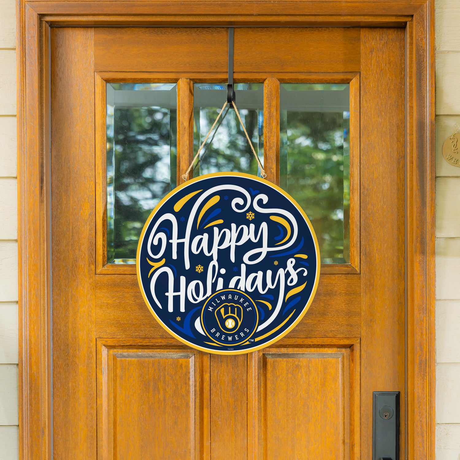 Milwaukee Brewers Holiday Round Door Décor with Hanging Rope, 18x18