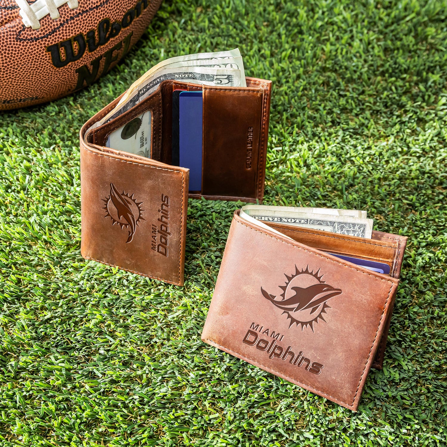 Miami Dolphins, Bi-Fold and Tri-Fold Wallet Gift Set, Brown