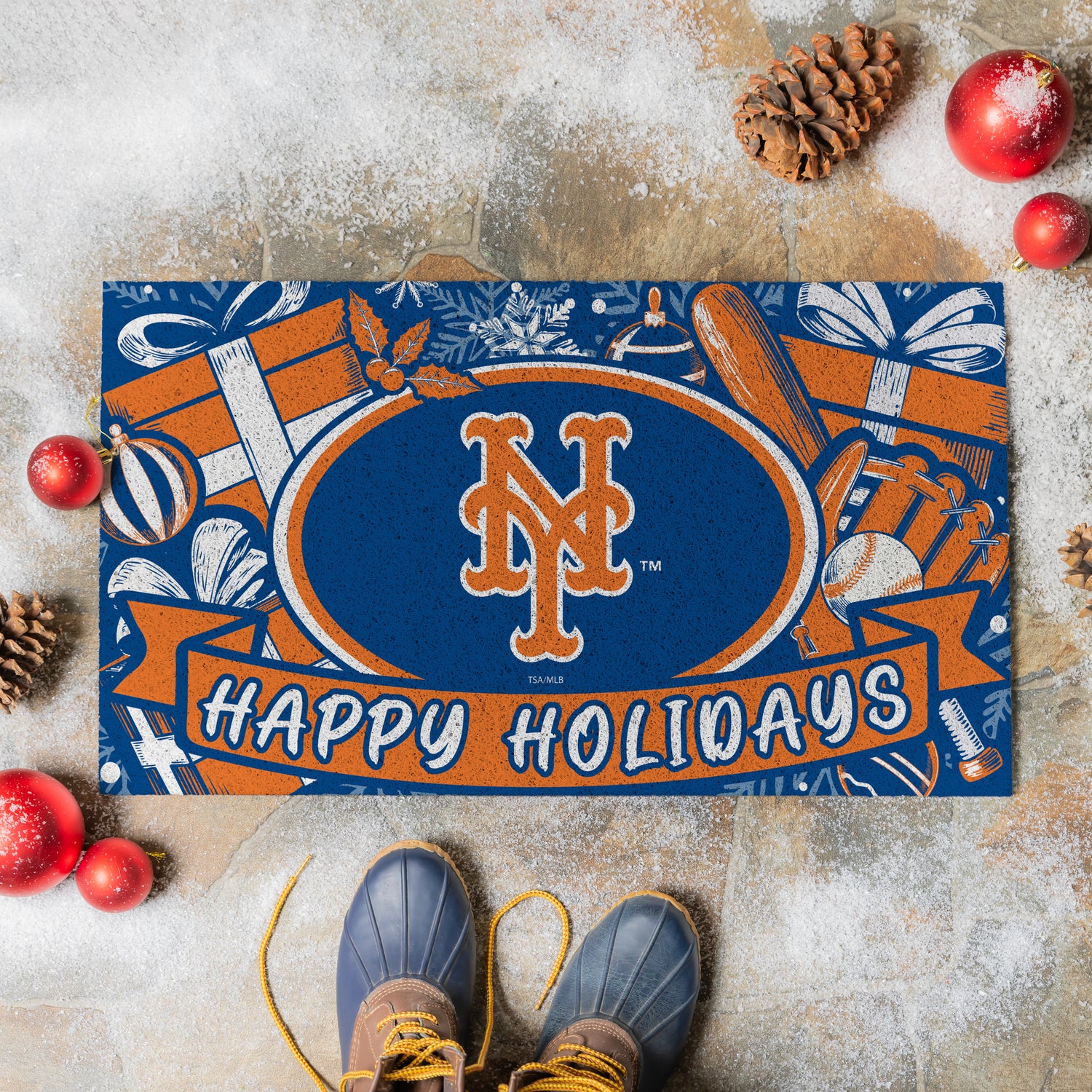 New York Mets Holiday PVC Mat, 28"x16"