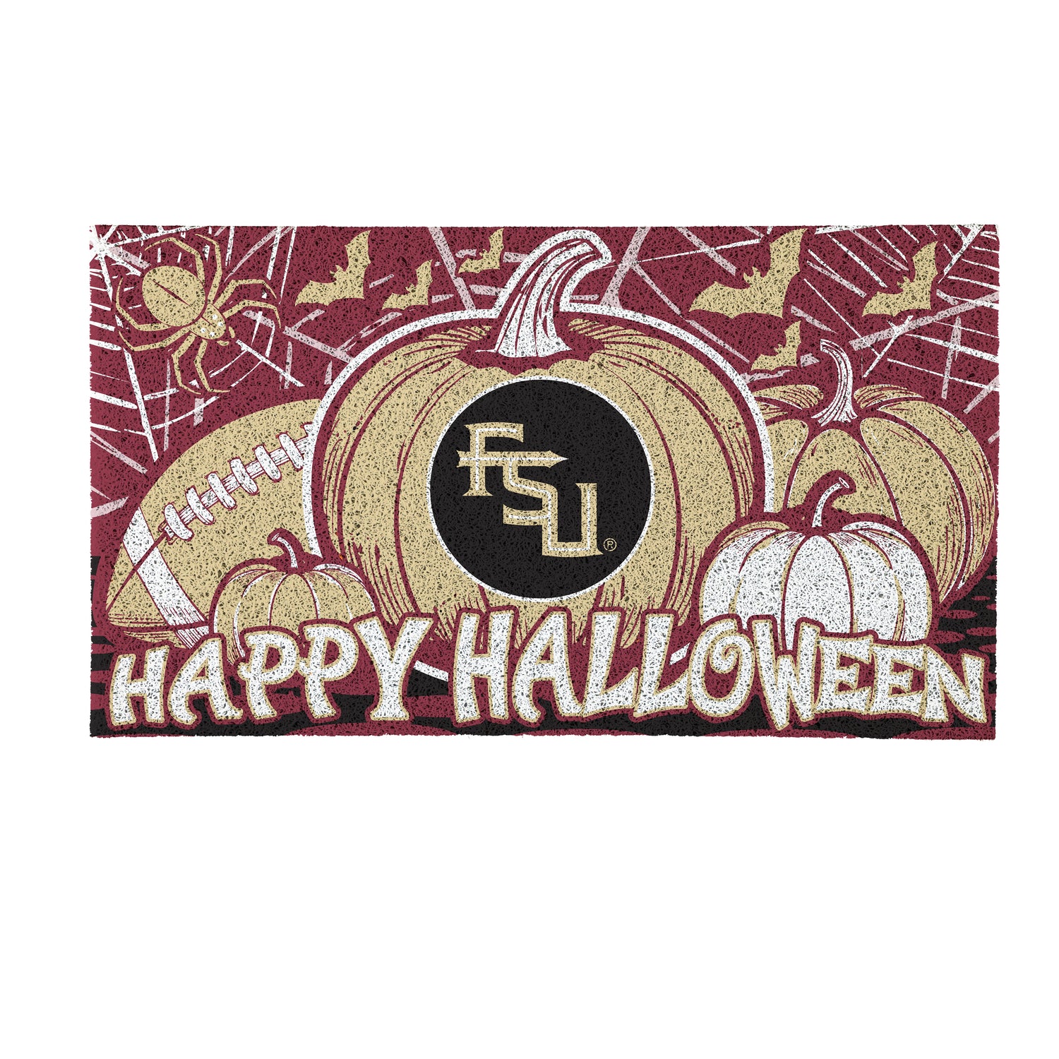 Bring team spirit to every home this Halloween season with this PVC mat. Showcasing the officially licensed team logo and colors surrounded by a spooktacular design, it's the perfect piece to cheer on the best team in style. This eye-catching mat traps dirt and debris to prevent messes from tracked into homes. It’s weather-proof and is made with fade-resistant dyes to last season after season. Made with durable materials, this piece was designed to sit in high-traffic areas. It’s perfect for indoor or outdoor use.