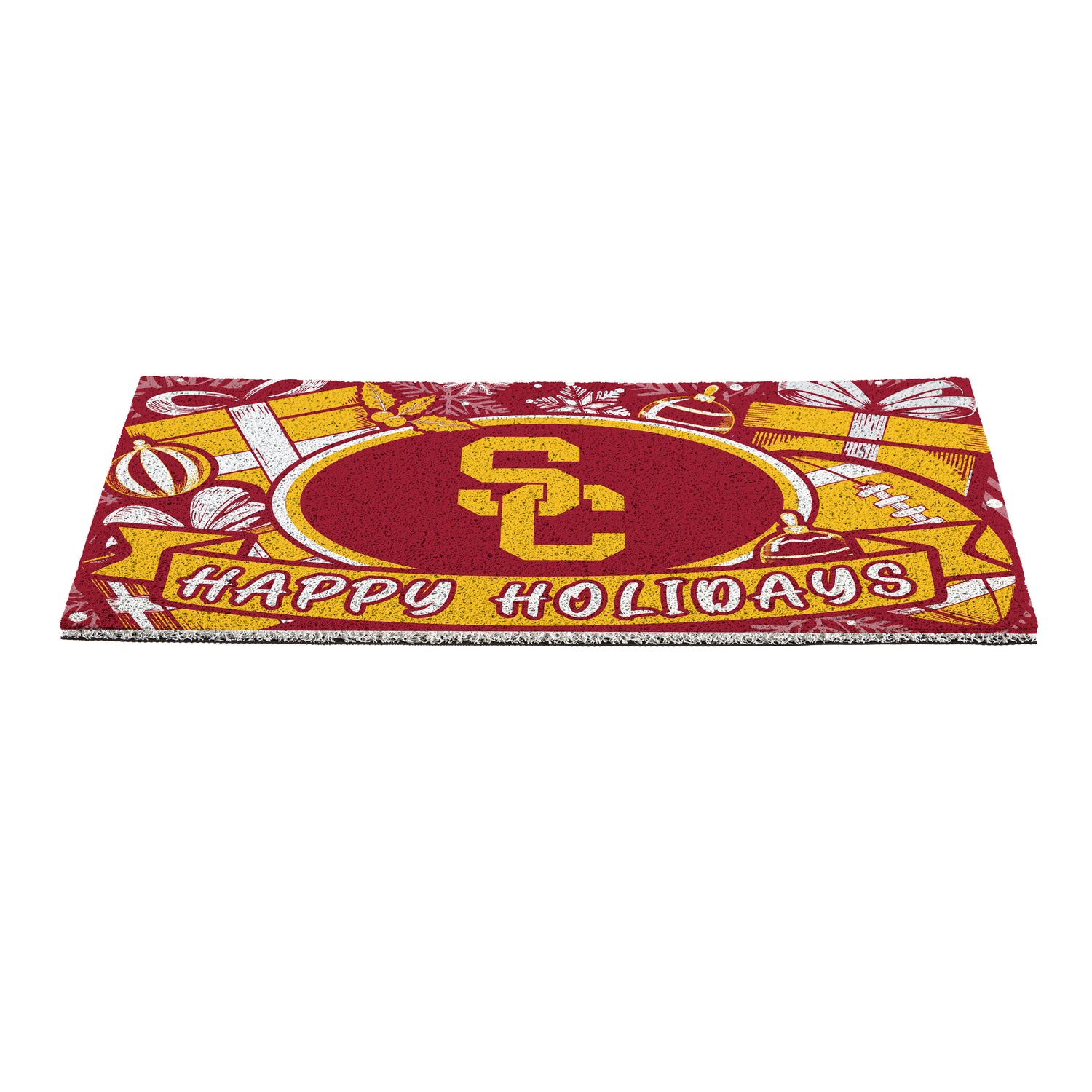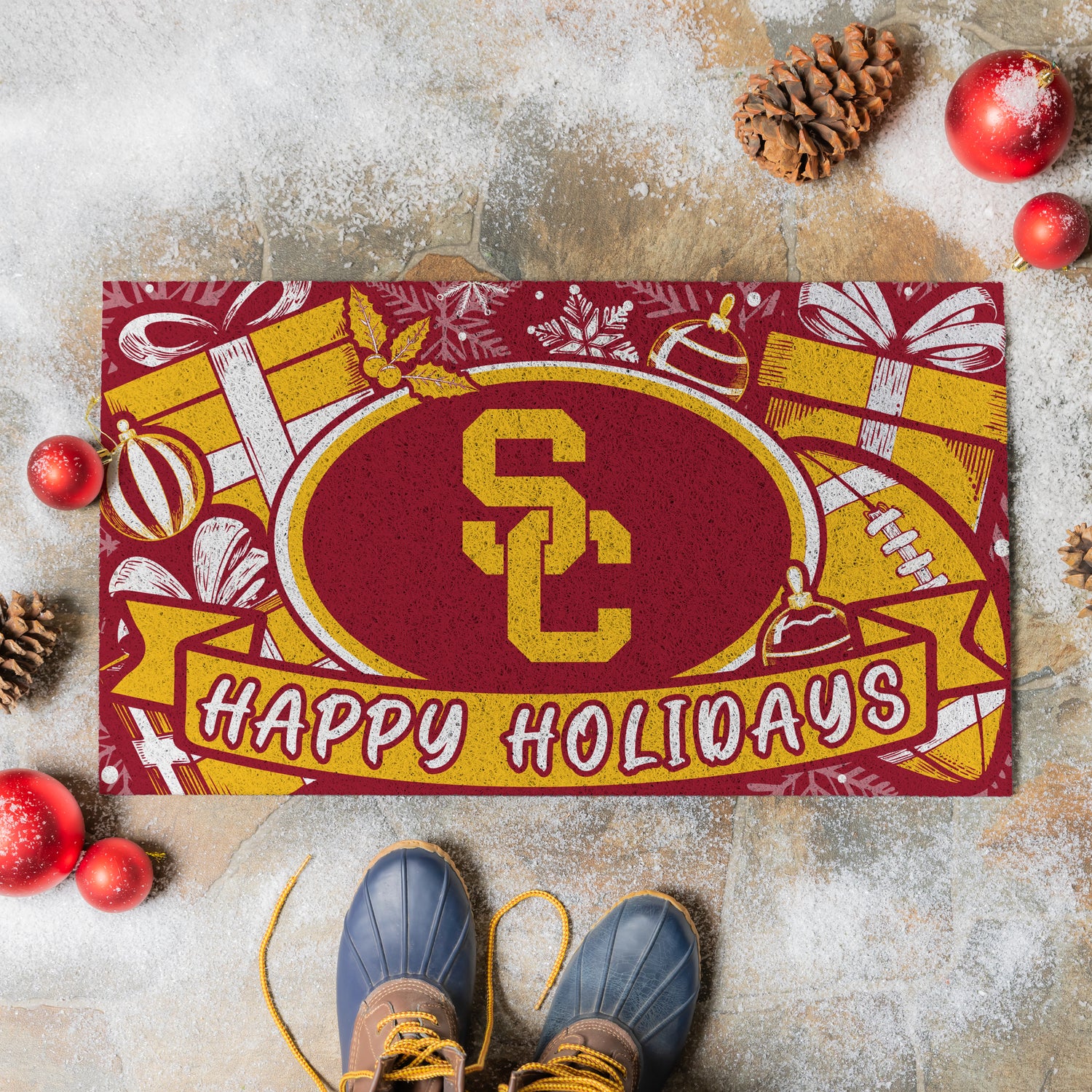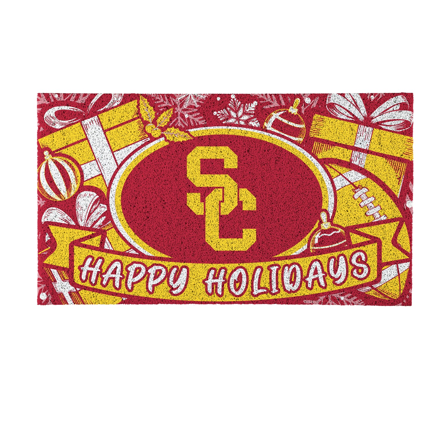Bring team spirit to every home this holiday season with this PVC mat. Showcasing the officially licensed team logo and colors surrounded by a jolly design, it's the perfect piece to cheer on the best team in style. This eye-catching mat traps dirt and debris to prevent messes from tracked into homes. It’s weather-proof and is made with fade-resistant dyes to last season after season. Made with durable materials, this piece was designed to sit in high-traffic areas. It’s perfect for indoor or outdoor use.