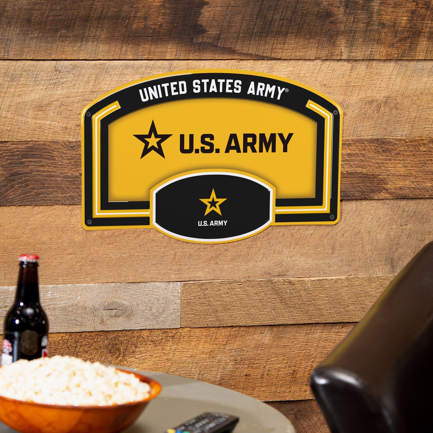 Show support to the military with this stamped steel wall sign. With the officially licensed logo, it evokes pride and honors those who have served where it's placed. Hang it up in the living room, entryway, hallway and more to show it off. It makes a great gift for anyone, from friends and family who joined the military to those who have loved ones in it. This sign is the perfect accent for any home.