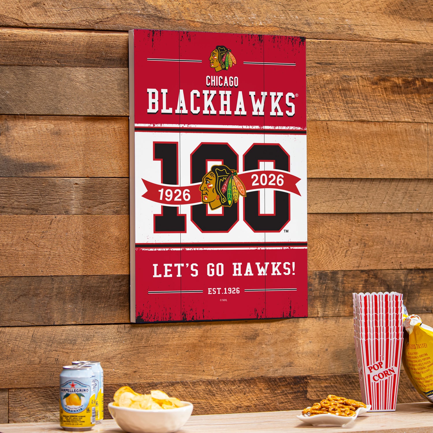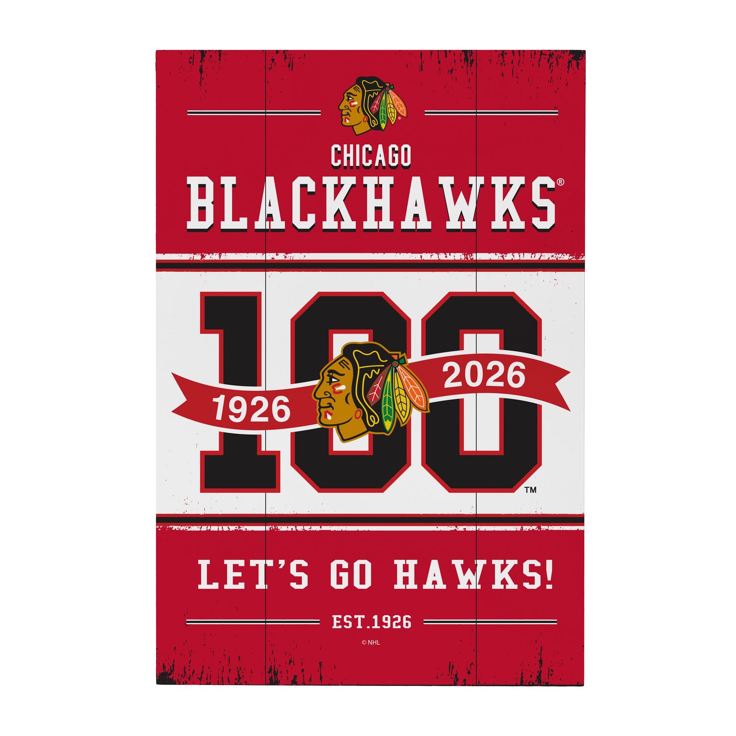 Chicago Blackhawks,100 Anniversary Wood Wall Sign, 16x24