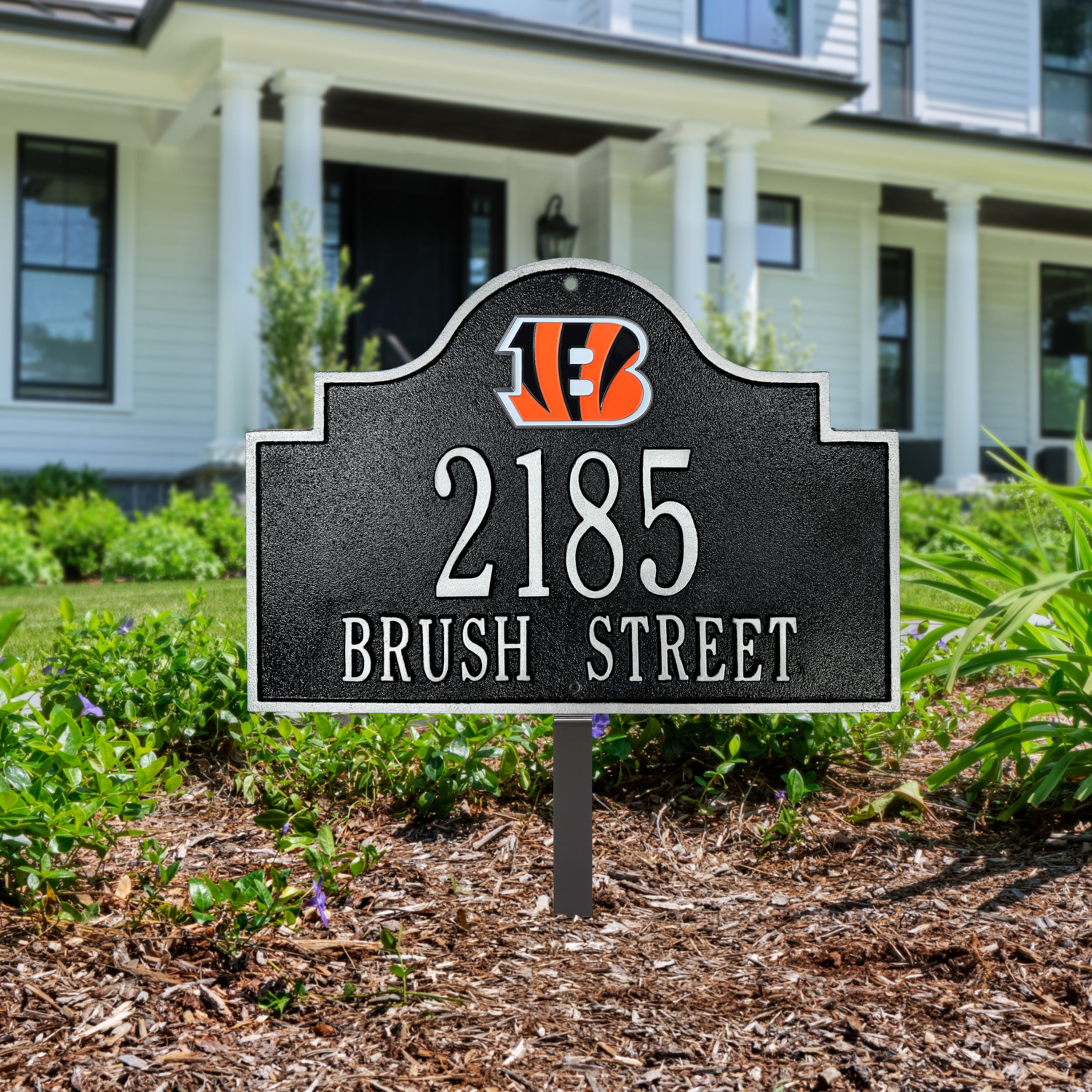 Celebrate team pride with this versatile, officially licensed sports plaque. Designed to be displayed your way, it can be staked into the ground or hung on a wall for the perfect placement inside or outside. Personalize it with permanent emblem letters to create a one-of-a-kind tribute that lasts season after season. Featuring authentic team colors and licensed designs, this plaque is a must-have for any fan looking to show off their loyalty in style.