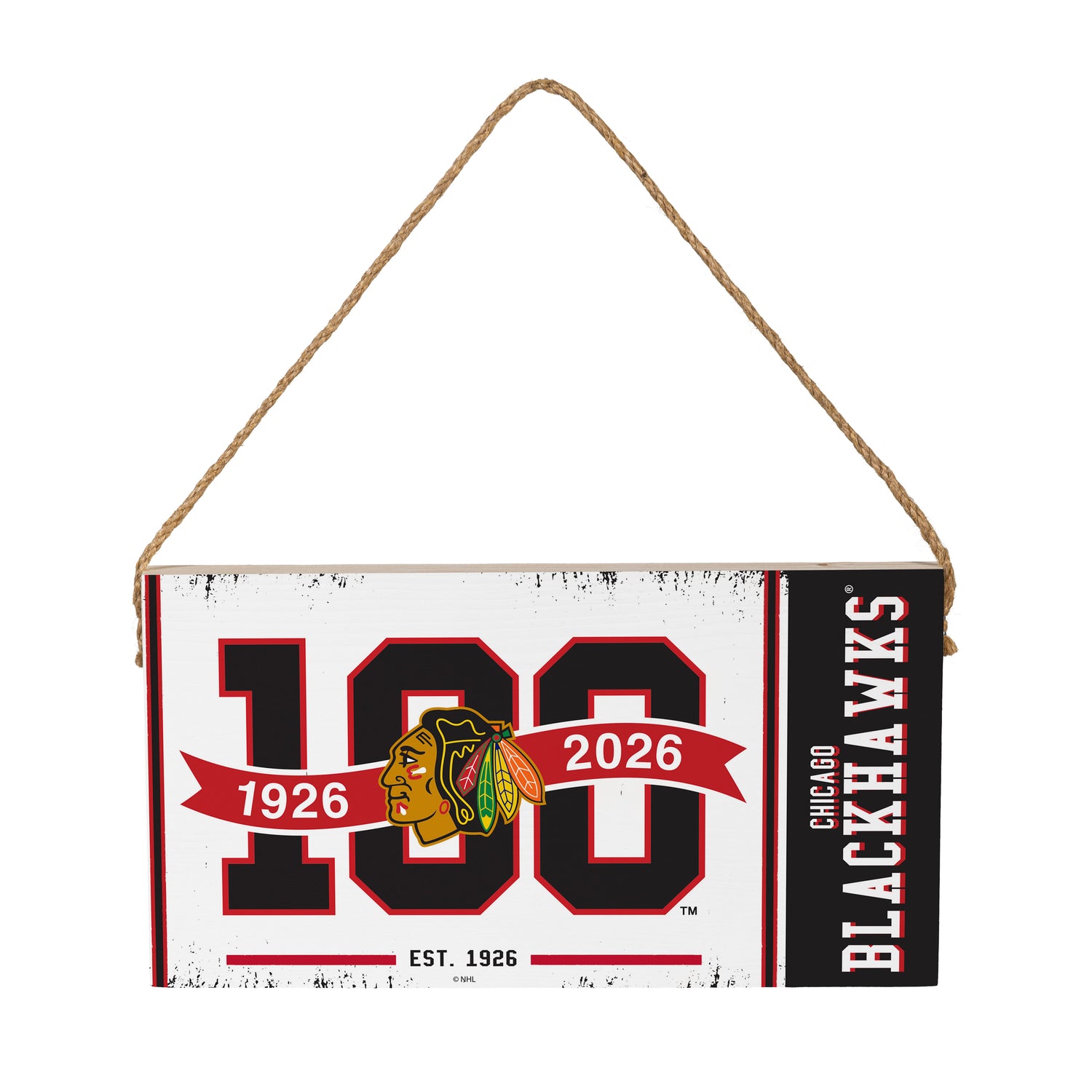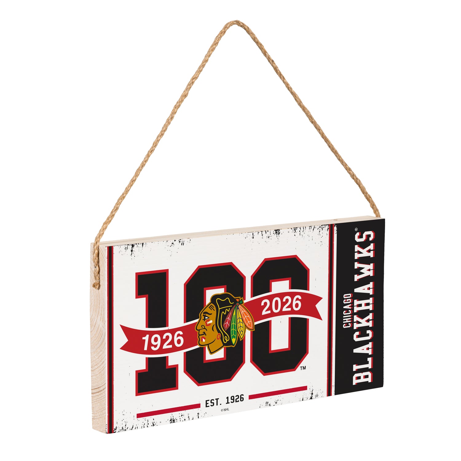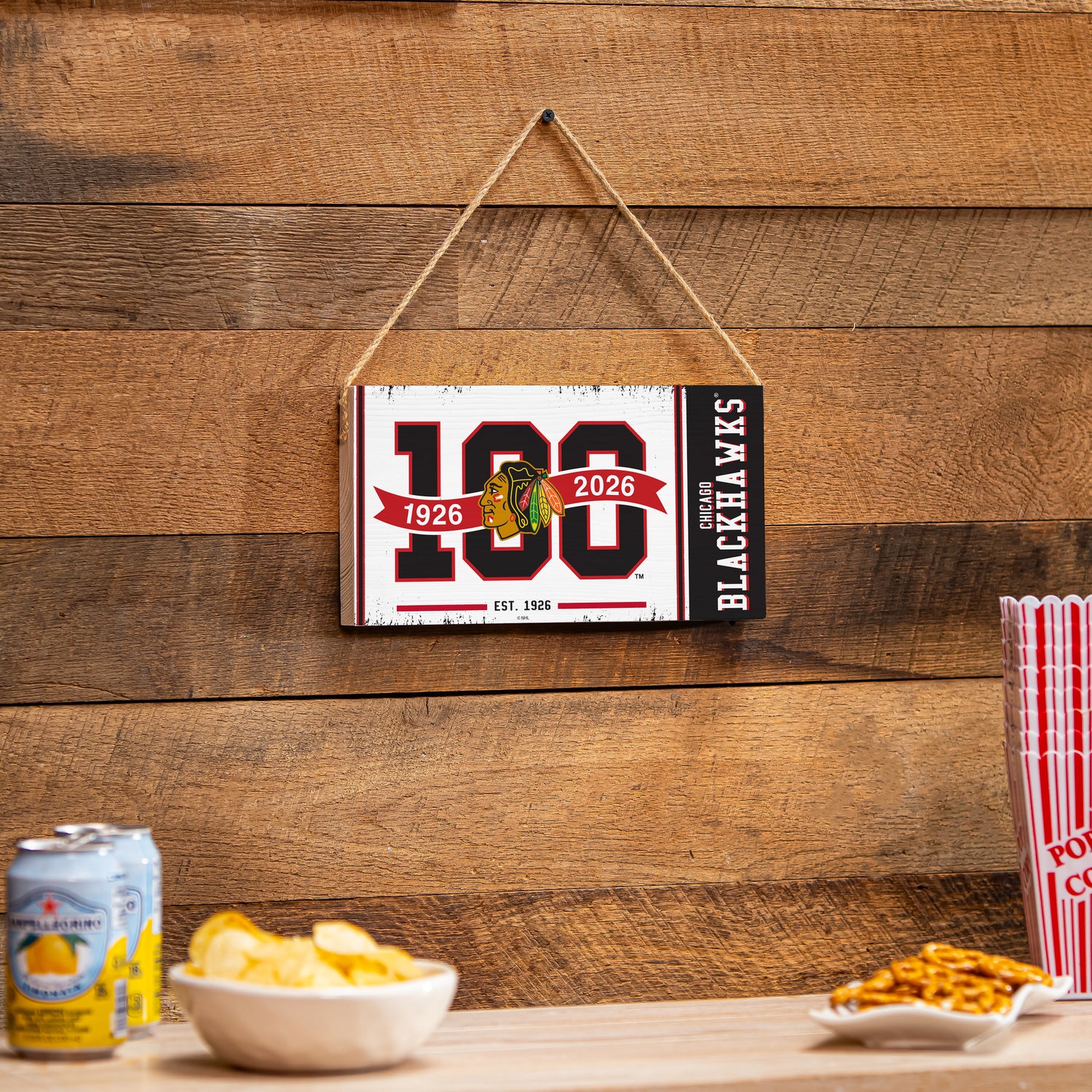 Chicago Blackhawks,100 Anniversary Wood Wall Sign, 6x11