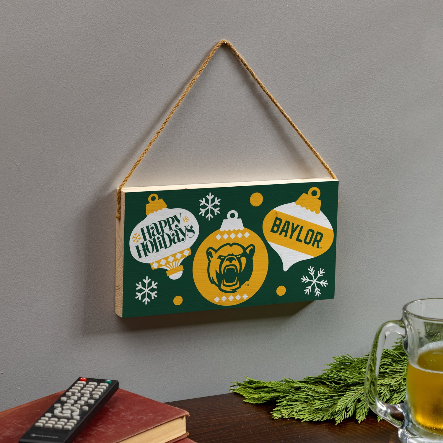 Show support to the best team in the league from game day to the off season with this wood wall sign. With the officially licensed logo and colors and a jolly holiday design, it evokes team pride and spirit in everyone who sees it. Hang it up in the living room, game room, hallway and more to show it off. It makes a great gift for anyone, from avid collectors to casual fans. This sign is the perfect accent for showing off the team or creating a subtle display.