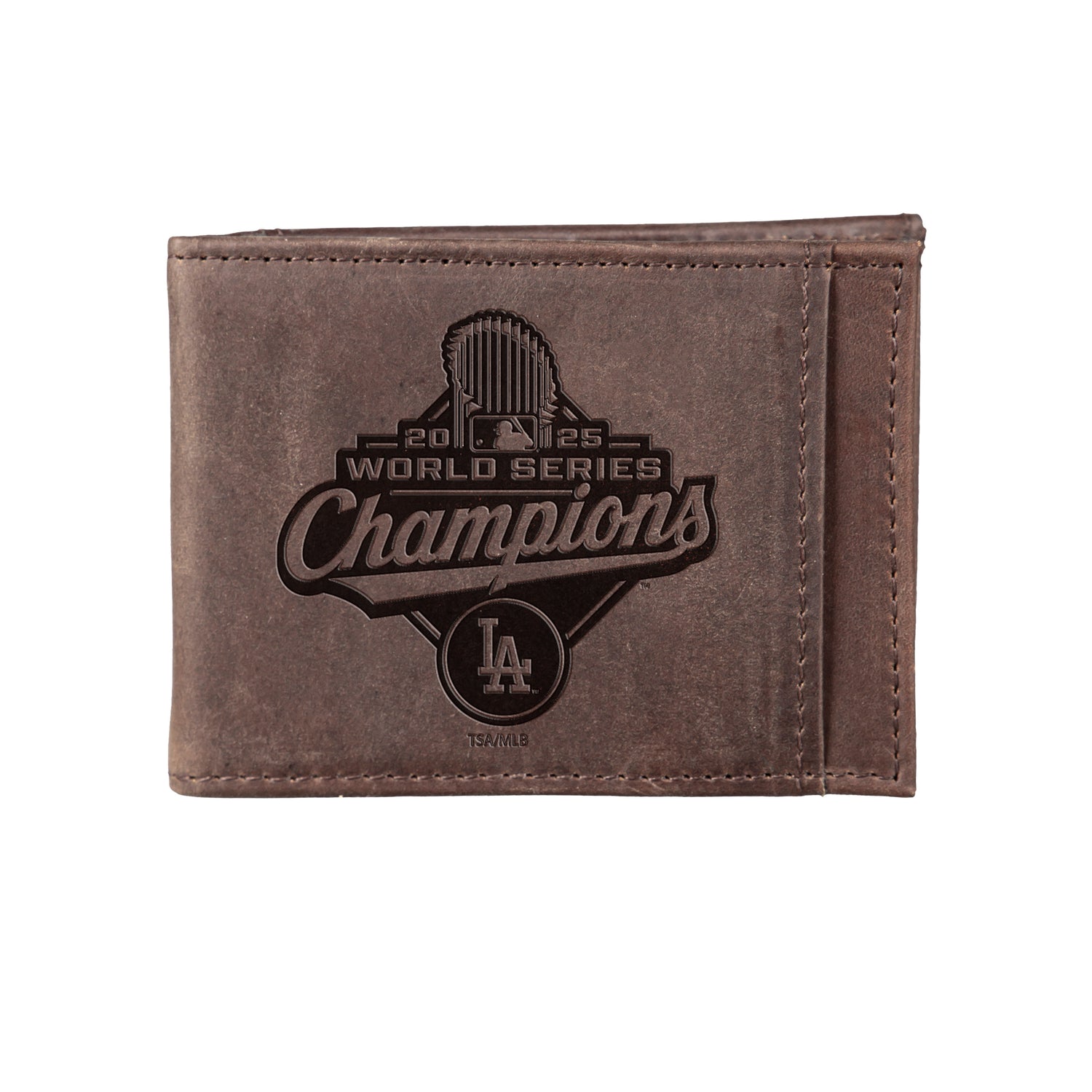 Celebrate the 2025 World Series champions with this wallet. Don't be the only one not showing team spirit. It's the perfect piece for everyone to show their team pride and it's sure to bring cheers from every fan who sees it. Gift it to a friend or family member that has been rooting for them all season long to make their day even better. It’s made of hot tumbled leather for durability and to limit wear and tear. It features an embossed design. The inside is made of genuine, supple leather to ensure softness. It has multiple card slots and a flip up ID holder.